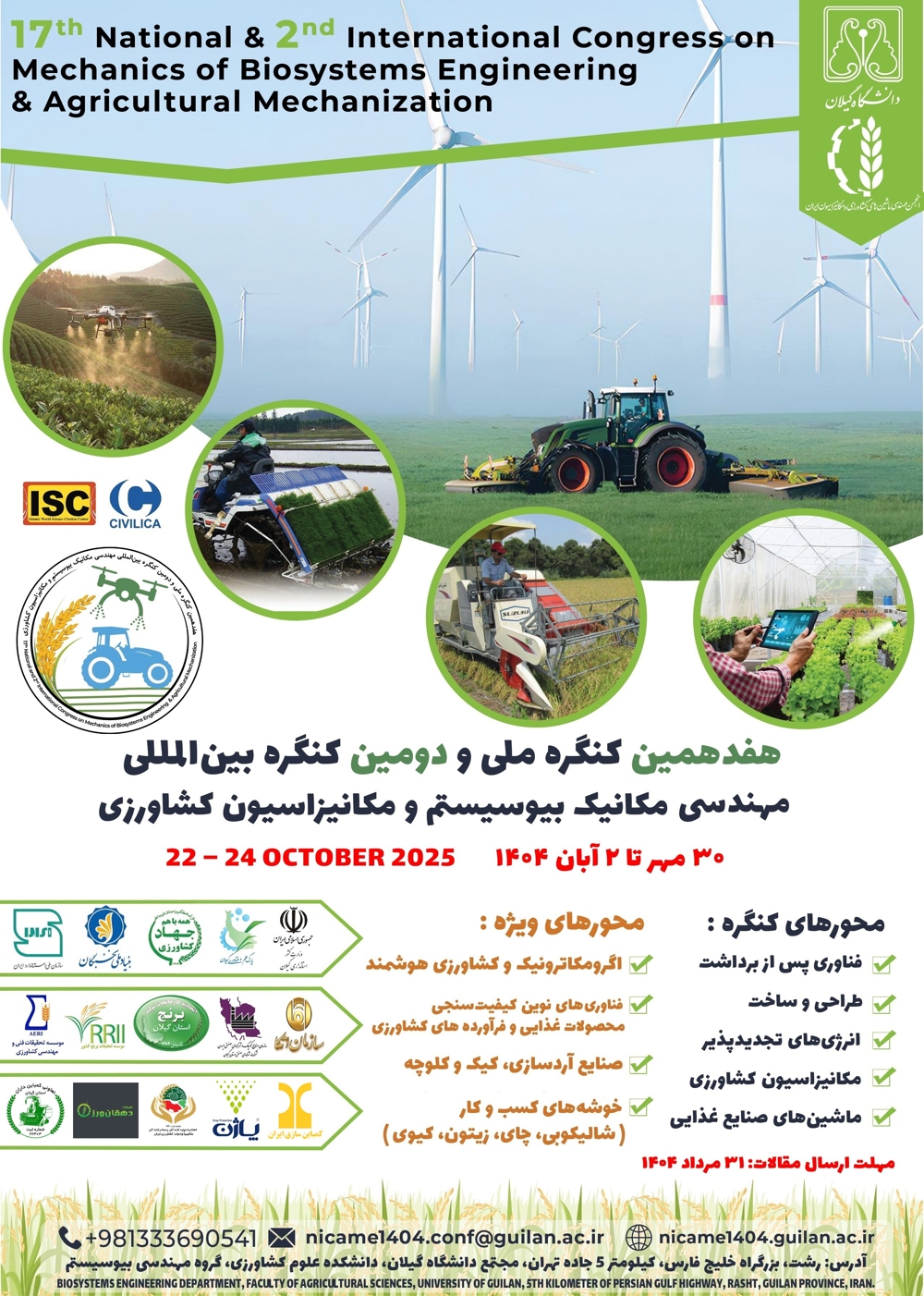 به اطلاع می رساند، به دلیل درخواست‌های متعدد از سوی پژوهشگران محترم، با تصمیم شورای سیاستگذاری هفدهمین کنگره ملی و دومین کنگره بین المللی مهندسی مکانیک بیوسیستم و مکانیزاسیون کشاورزی مهلت ارسال مقالات تا 31 مردادماه 1404 تمدید شد.