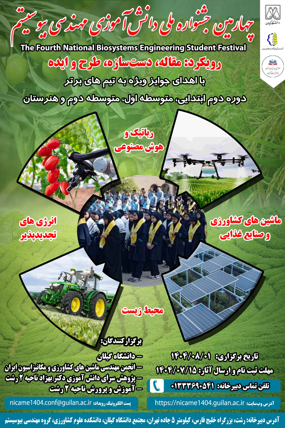 چهارمین جشنواره ملی دانش آموزی مهندسی بیوسیستم به میزبانی دانشگاه گیلان برگزار خواهد شد.